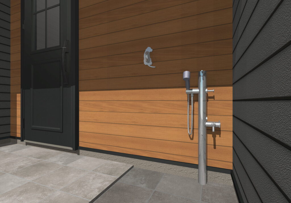 そんなときの為に、玄関横にペット用水栓を採用しました。