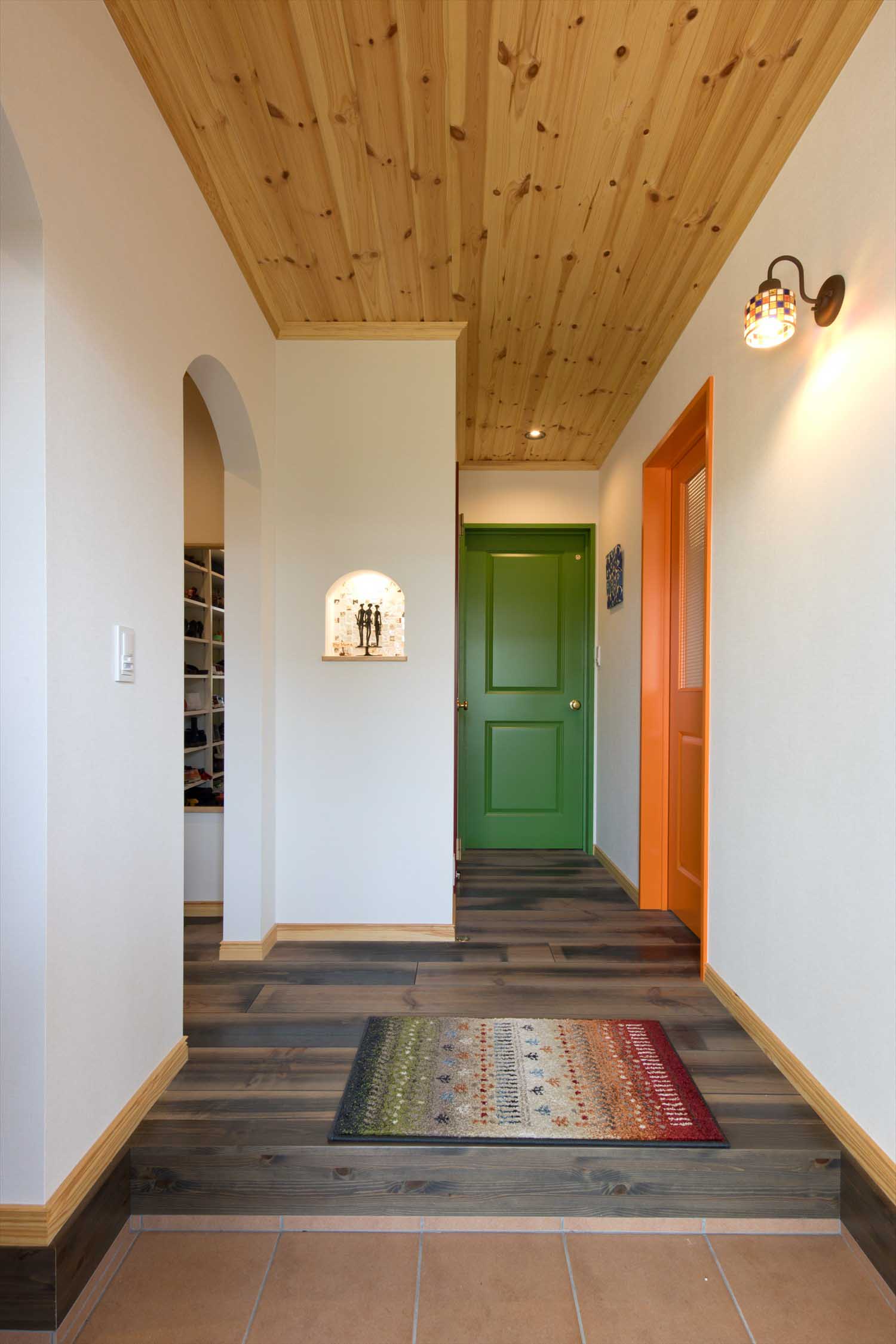 カラフルなドアやニッチが空間にリズムを生み、家の中にいるだけで気分が上がります。